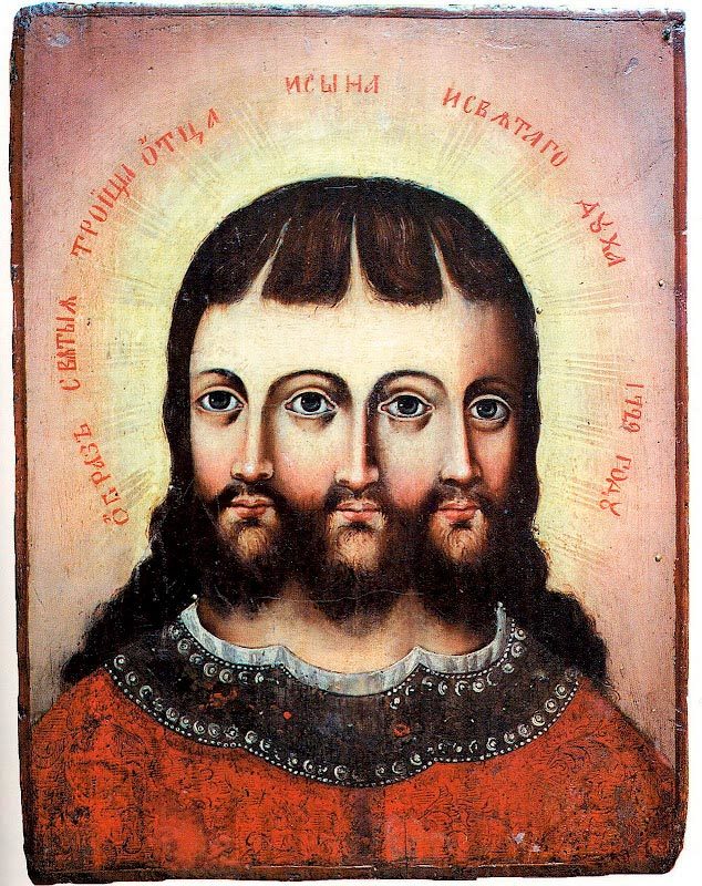 Смесоипостасные иконы Первым известным иконописцем в истории принято считать одного из учеников Иисуса Христа — Луку. Он создал икону Пресвятой Богородицы, а после — икону святых Апостолов Петра и Павла. На протяжении многих лет после этого шло формирование канонов иконописи. Так возникла регламентированная система изображений — иконография Иисуса Христа и других святых. Отступление от канонов не приветствовалось церковью, но всё-таки происходило. В X веке в западной Европе особое распространение получили иконы Святой Троицы, написанной в виде трёх идентичных друг другу фигур с ликом Христа. На некоторых иконах Троица имела одно туловище, но три головы с одинаковыми ликами. Это было связано с появлением в католицизме термина «филиокве». Он означал, что Святой Дух исходит одновременно и от Бога Отца, и от Бога Сына. С филиокве были несогласны многие, из-за этого даже произошёл раскол католической церкви. Позднее многие иконы с изображением Святой Троицы в виде трёх одинаковых фигур с идентичными ликами уничтожили. А им на смену пришли смесоипостасные иконы. На иконе «Смесоипостасная троица» три одинаковых лика Бога располагались на одной голове. Выходило так, что у трёхликого лица было четыре глаза (два глаза среднего лика были глазами и боковых), три носа и три рта. Тело же на изображении было одно. Таким образом неизвестный иконописец хотел отразить то, что Святая Троица является единой и неделимой. Примечательно, что на протяжении нескольких веков такое изображение Святой Троицы считалось церковниками самым правильным. Однако оно не находило понимания у простых прихожан. Многие просто не понимали причин, по которым смесоипостасные иконы объединяли в себе три лика Бога. Разумеется, это порождало множество кривотолков и домыслов. В Европе смесоипостасные иконы оказались под запретом в начале XVI века. Такое решение приняли на Тридентском соборе. В 1628 году указом Папы Римского Урбана VIII практика написания смесоипостасных икон Троицы была запрещена вновь. Все подобные иконы объявили кощунственными и еретическими. После этого практически все смесоипостасные иконы в Европе сожгли. А те, что каким-то чудом сохранились, сегодня можно увидеть в музеях. Например, в австрийском музее народного искусства в Тироле или над входом в одну небольшую церковь в Румынии. В России запрет на смесоипостасные иконы ввели в 1764 году Священным синодом Русской православной церкви.