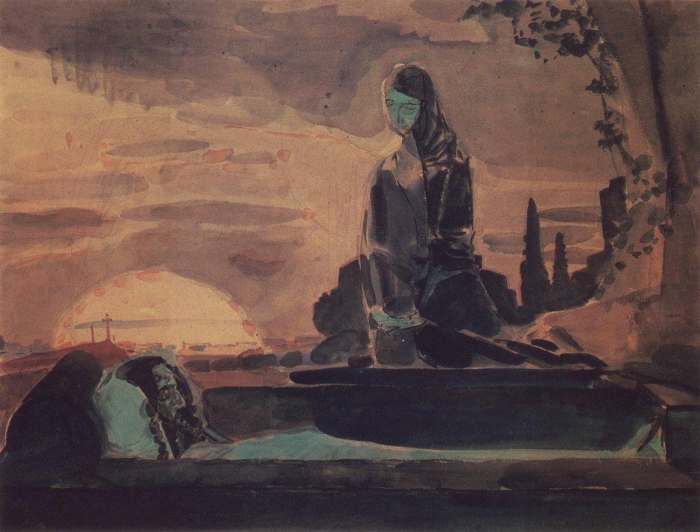 Михаил Александрович Врубель (1856 - 1910) - русский художник рубежа 19 - 20 веков, работавший практически во всех видах и жанрах изобразительного искусства: живописи, графике, декоративной скульптуре и театральном искусстве. "Надгробный плач" 1887 г.