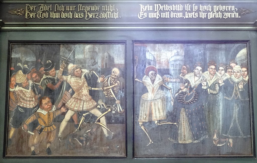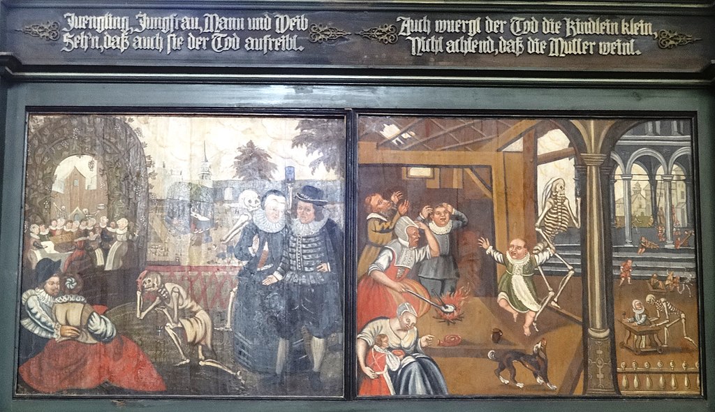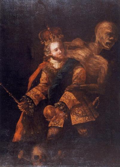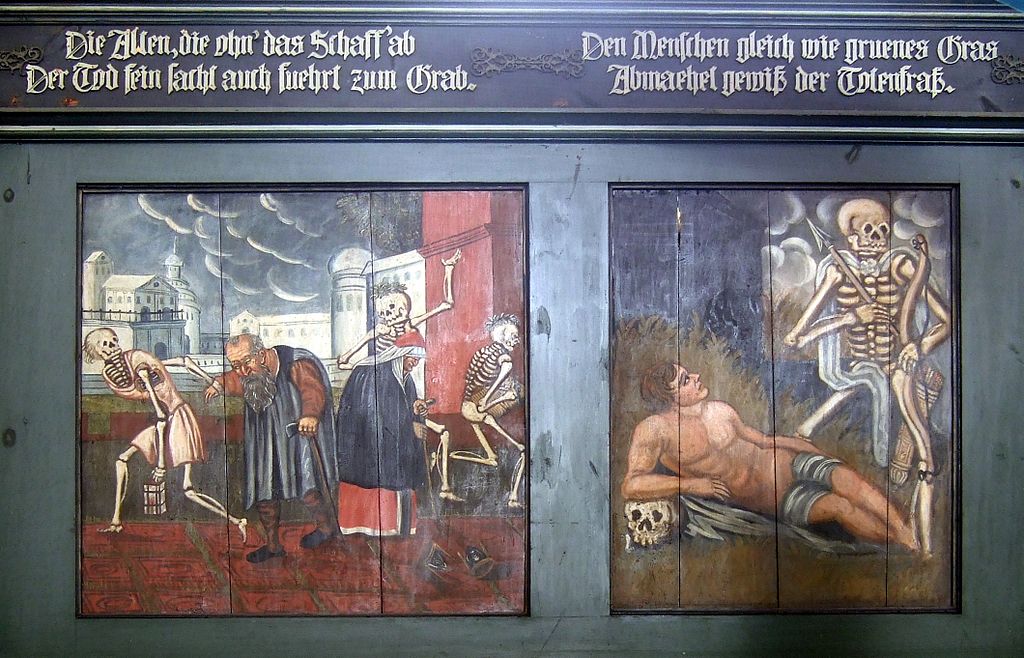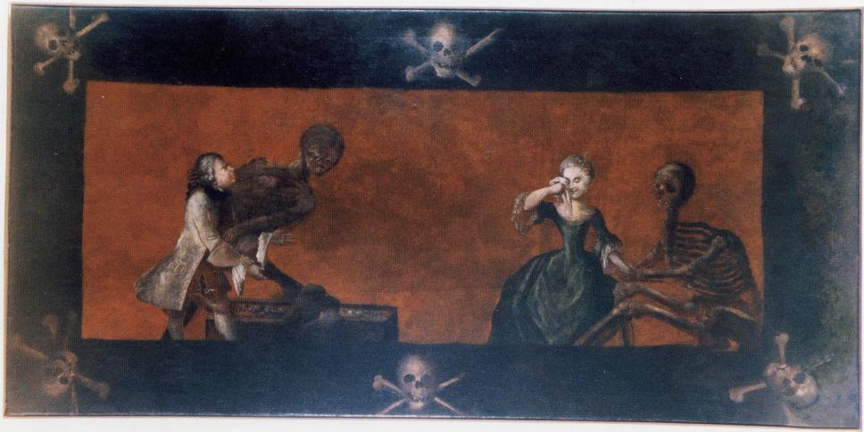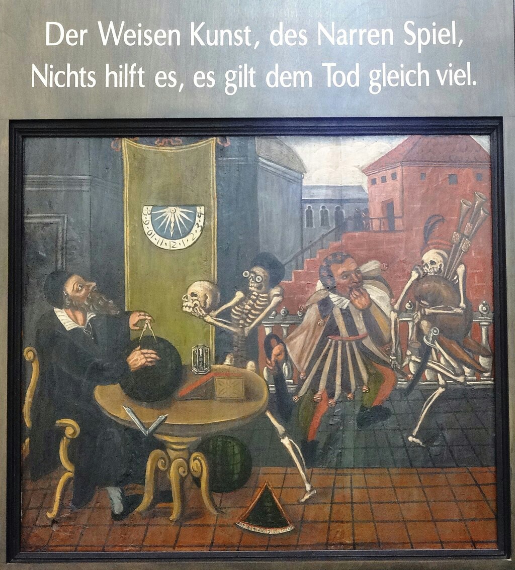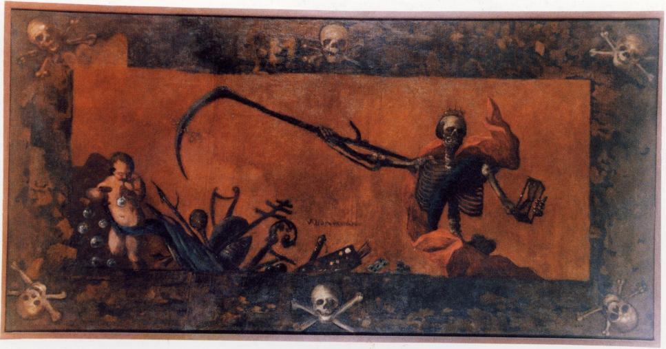 «Смерть, пускающая мыльные пузыри», 18 век. Пузыри символизируют хрупкость жизни. Потолок часовни в аббатстве Майклсберг, Бамберг, Германия.