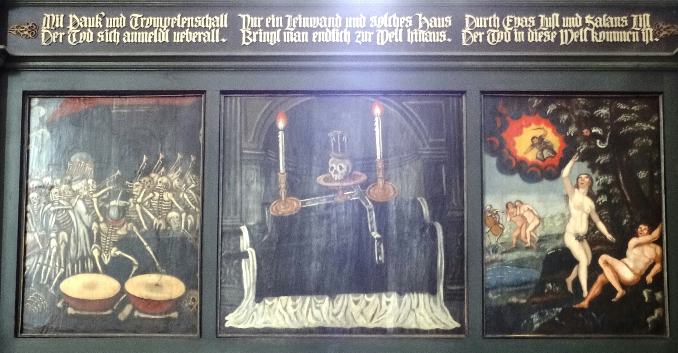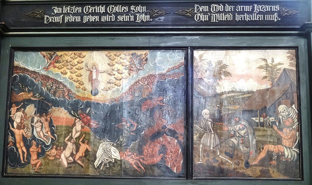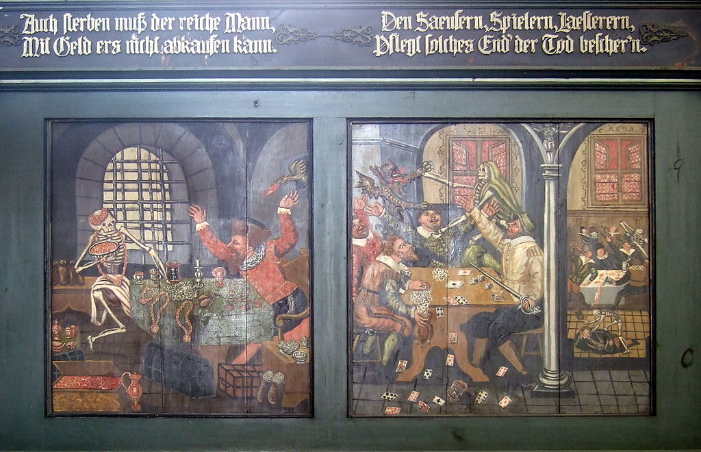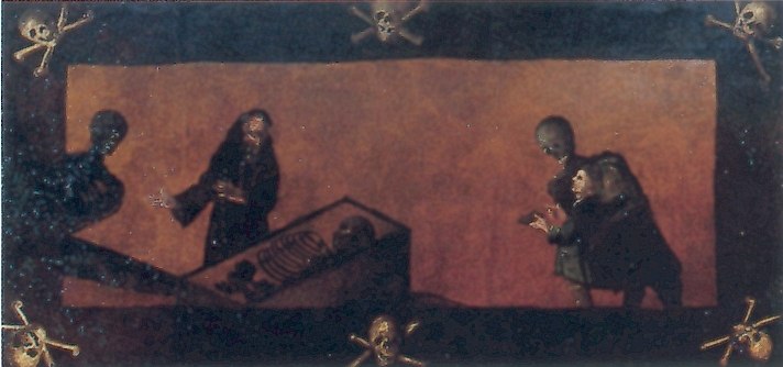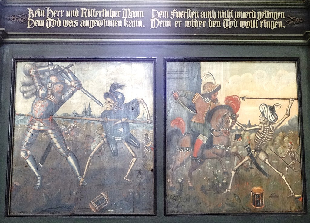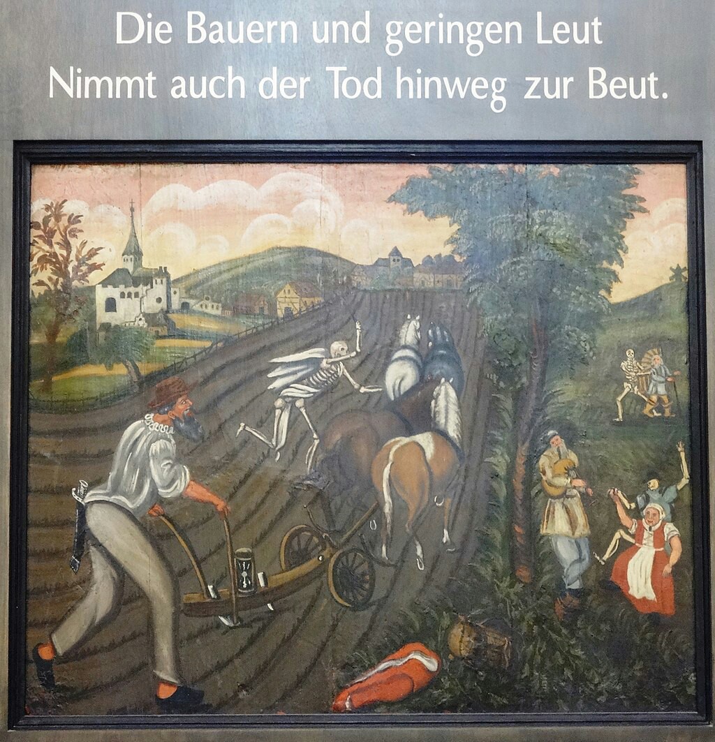 «Смерть, пускающая мыльные пузыри», 18 век. Пузыри символизируют хрупкость жизни. Потолок часовни в аббатстве Майклсберг, Бамберг, Германия.